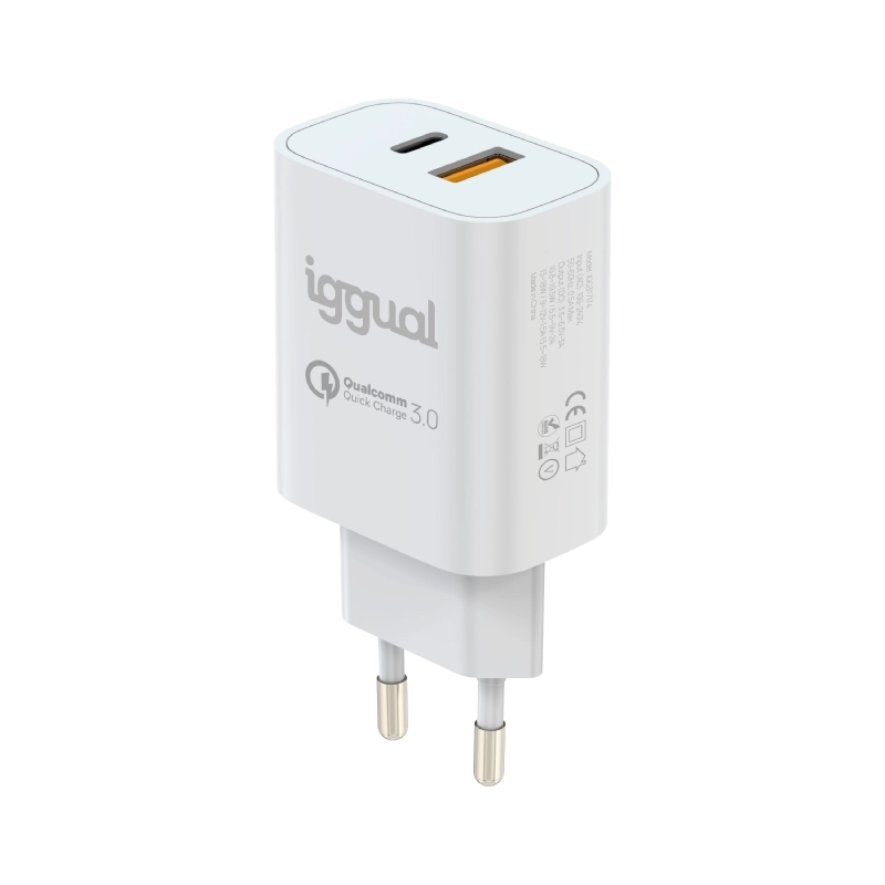 iggual Cargador doble USB QC3.0 + tipo C PD 20W
